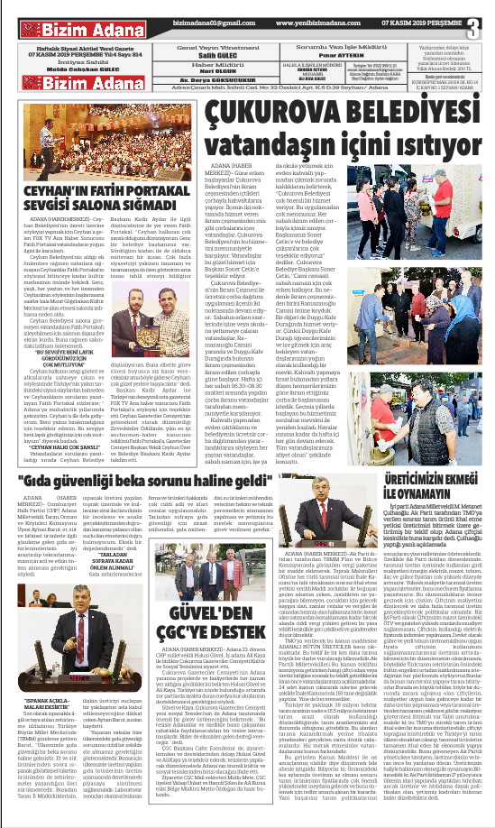 YENİ BİZİM ADANA 7 KASIM 2019 YAYINI www.yenibizimadana.com | Yeni Bizim Adana Gazetesi Web SitesiYeni Bizim Adana Gazetesi Web Sitesi