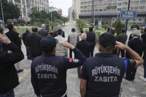 Adana Büyükşehir Belediyesi taş bina önünde toplanan Büyükşehir bürokratları ile çalışanlar da saat 09:05’te saygı duruşunda bulundu. Törende Büyükşehir Belediyesi Bando Takımı eşliğinde İstiklal Marşı okundu, saygı duruşunda bulunuldu.