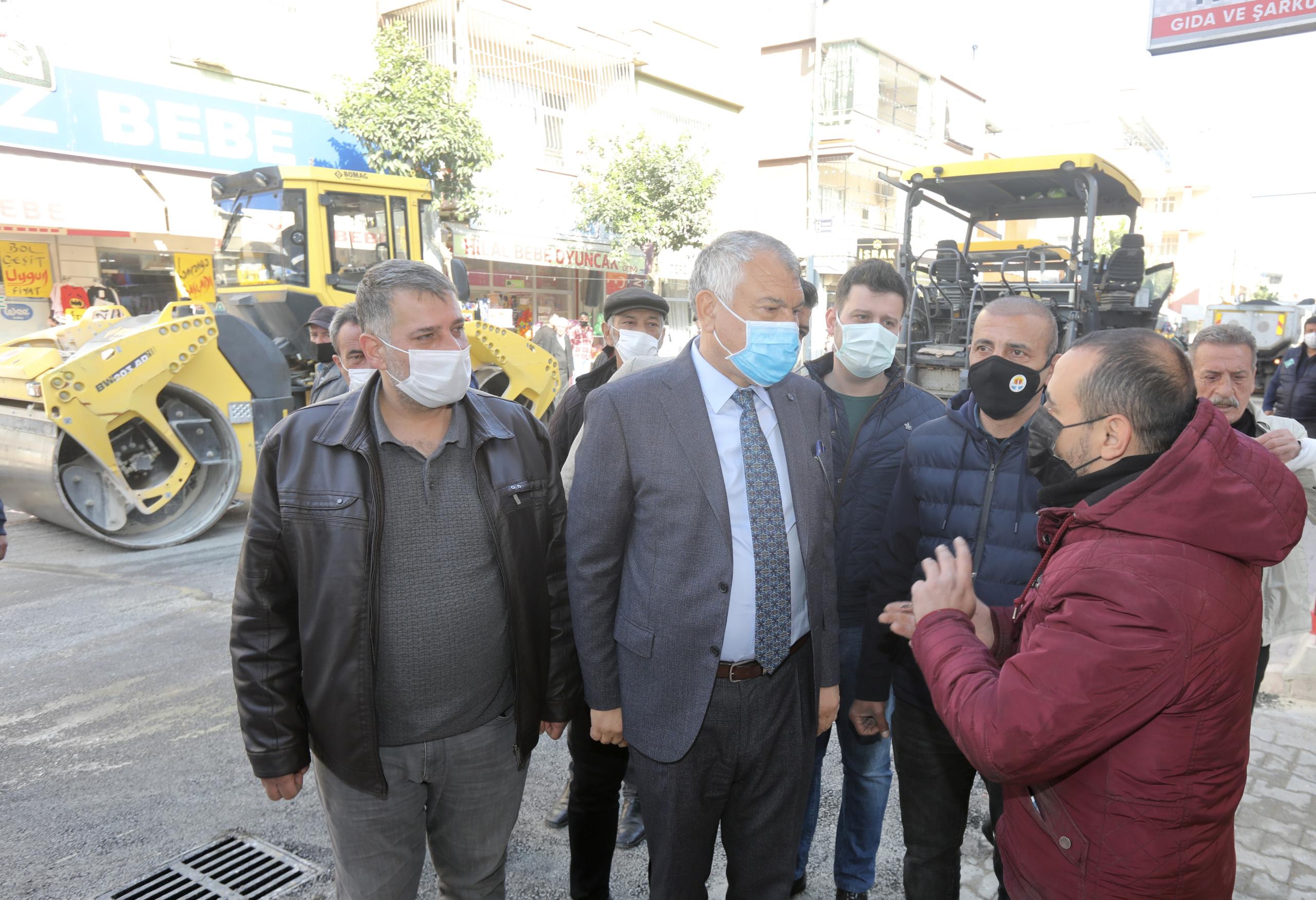 Başkan Zeydan Karalar asfalt çalışmasını denetledi, esnafı ziyaret etti, vatandaşları dinledi.