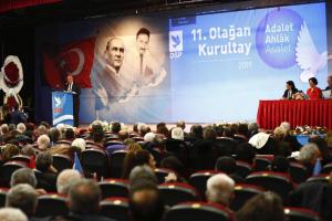Kurultay’ın divan başkanlığına, Parti’nin önceki dönem genel başkanı Masum Türker seçildi. Türker, yaptığı konuşmada Türkiye’nin tarihi bir dönemeçten geçtiğini vurgulayarak, DSP’nin bu dönemde hayati bir sorumluluğa sahip olduğunun altını çizdi. Daha sonra Kurultay konuşması için Önder Aksakal kürsüye çıkarak, genel başkan olarak geçirdiği dönemde yapılanları anlattı.