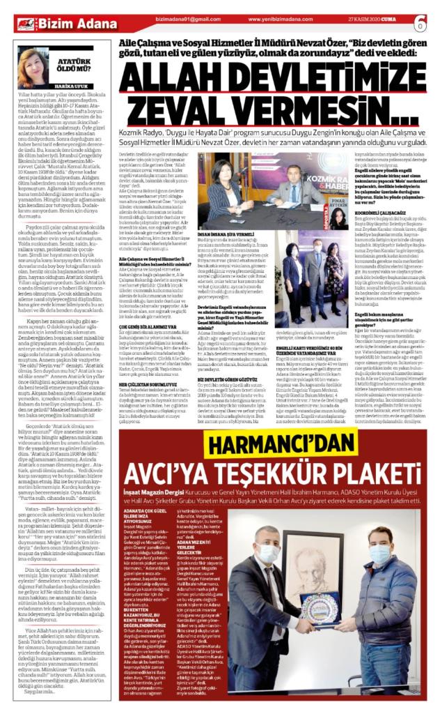 On yedi bin sekiz yüz elli altı vatandaşımıza engelli bakım ücreti olarak 2019 yılında 310 milyon liradır ve bu sadece Adana’da ödediğimiz ücrettir. Bu oldukça büyük bir rakamdır. İşte devletin sosyal ilkesi ve şefkat yüzü de kendisini burada gösteriyor. Ben her zaman şunu söylüyorum, biz devletin gören gözü, tutan eli ve gülen yüzüyüz, olmak da zorundayız.