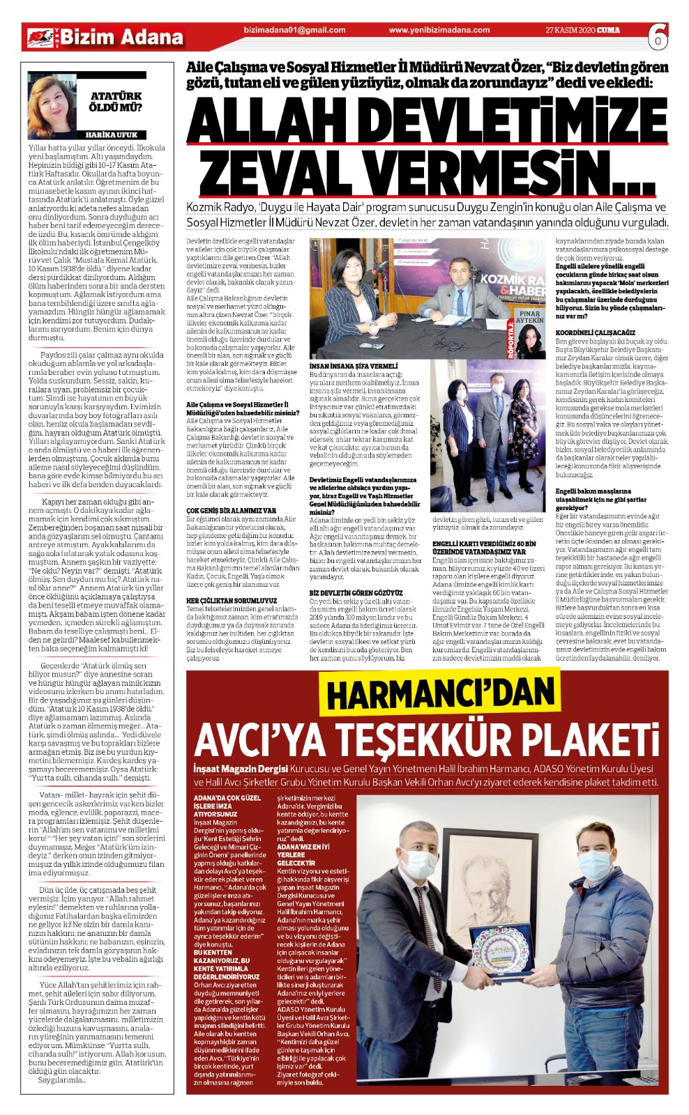 Ben göreve başlayalı iki buçuk ay oldu. Başta Büyükşehir Belediye Başkanımız Zeydan Karalar olmak üzere, diğer belediye başkanlarımızla, kaymakamımızla iletişim içerisinde olmaya başladık. Büyükşehir Belediye Başkanımız Zeydan Karalar’la görüşeceğiz, kendisinin gerek kadın komiteleri konusunda gerekse mola merkezleri konusunda düşüncelerini öğreneceğiz. Bu sosyal vaka ve olayları yönetmek ilde belediye başkanlarımıza çok büyük görevler düşüyor. Devlet olarak bizler, sosyal belediyecilik anlamında da başkanlar olarak neler yapılabileceği konusunda fikir alışverişinde bulunacağız.
