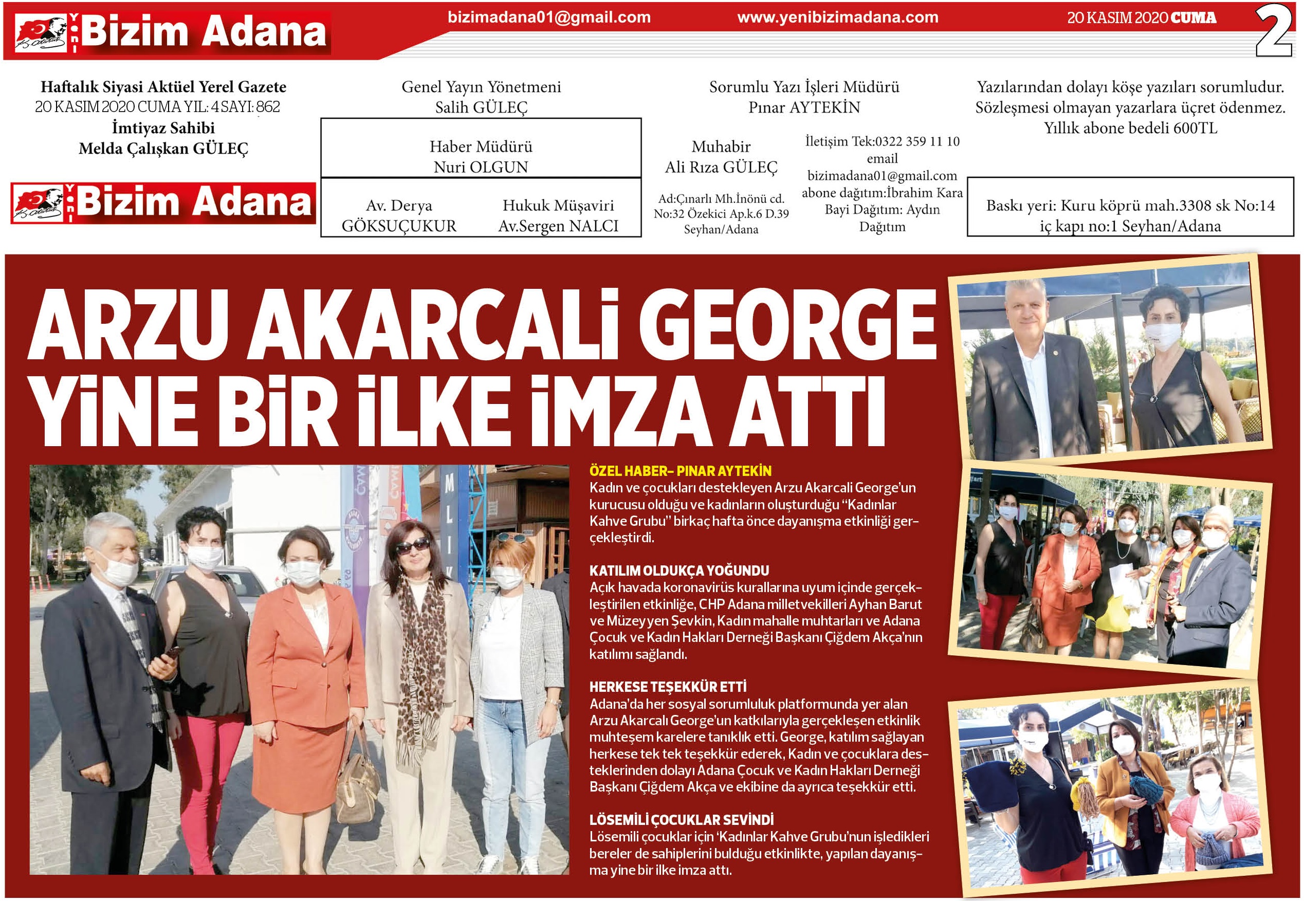 Adana’da her sosyal sorumluluk platformunda yer alan Arzu Akarcalı George’un katkılarıyla gerçekleşen etkinlik muhteşem karelere tanıklık etti. George, katılım sağlayan herkese tek tek teşekkür ederek, Kadın ve çocuklara desteklerinden dolayı Adana Çocuk ve Kadın Hakları Derneği Başkanı Çiğdem Akça ve ekibine da ayrıca teşekkür etti.