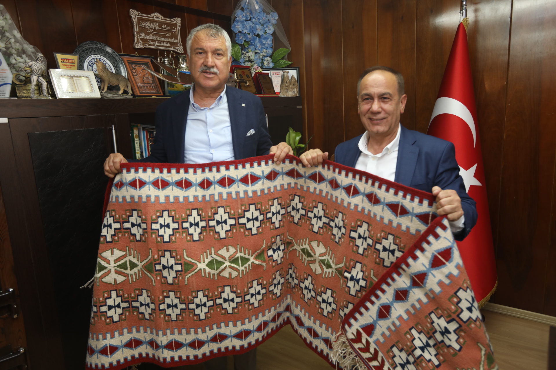 Saimbeyli Belediye Başkanı Mustafa Şahin Gökçe ve Feke Belediye Başkanı Ahmet Sel de, halkın menfaatine olan her konuda Başkan Zeydan Karalar’a destek vereceklerini dile getirdiler. Başkan Zeydan Karalar, Saimbeyli Belediye Başkanı Mustafa Şahin Gökçe’nin kendisine, Saimbeylili kadınların dokuduğu bir kilim hediye etmesi üzerine, halkın ürettiği ürünleri değerlendireceklerini söyledi.