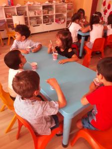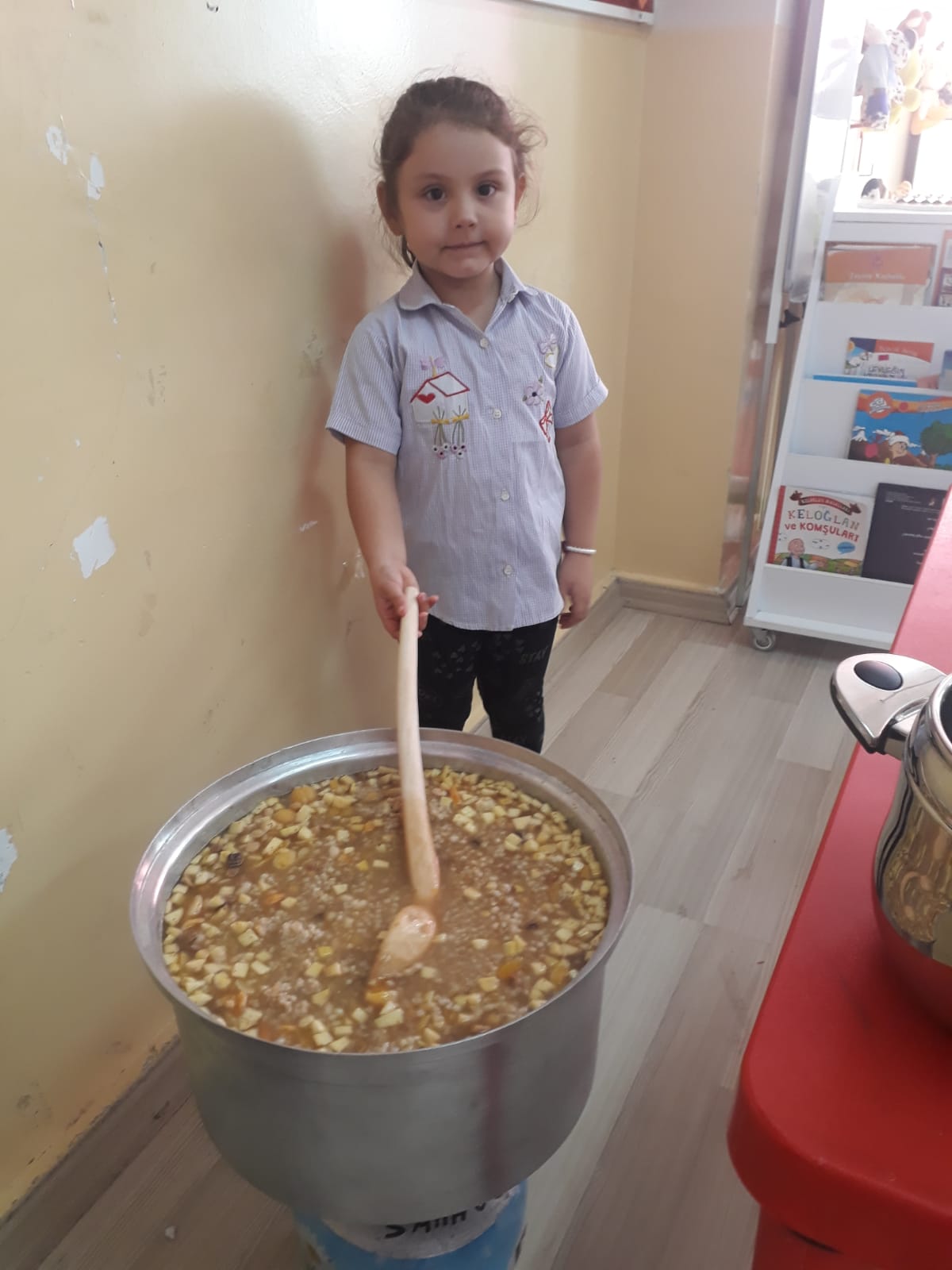 Aşurenin pişmesinin ardından minikler hep beraber yiyerek bu anlamlı etkinliğe ortak oldu.