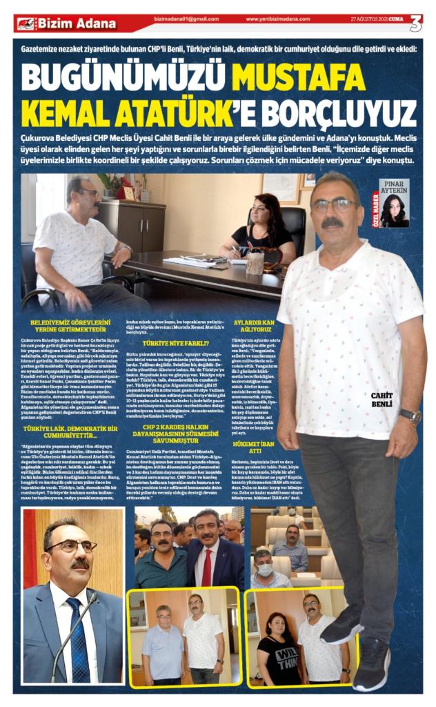 Çukurova Belediyesi CHP Meclis Üyesi Cahit Benli ile bir araya gelerek ülke gündemini ve Adana’yı konuştuk. Meclis üyesi olarak elinden gelen her şeyi yaptığını ve sorunlarla birebir ilgilendiğini belirten Benli, “İlçemizde diğer meclis üyelerimizle birlikte koordineli bir şekilde çalışıyoruz. Sorunları çözmek için mücadele veriyoruz” diye konuştu.