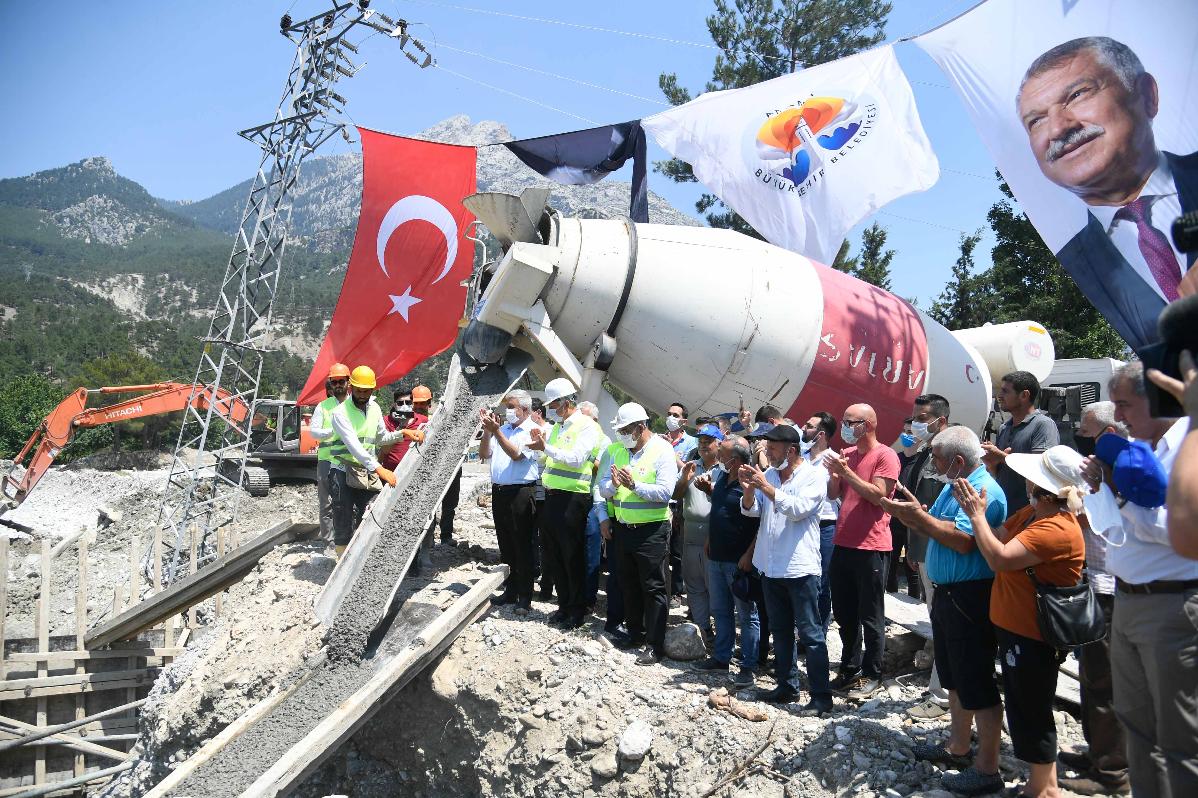 Başkan Zeydan Karalar daha sonra, tarihi Belemedik Köyü ve mesire alanına ulaşımı Sağlayacak Belemedik Köprüsü’nün temelini attı.