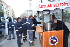 “Emekçi işçilerin ve öğrencilerin çorbaları anne elinden” projesiyle sabah saat 07:00 da Kent Meydanı ve Kaymakamlık durağı önünde sıcak çorba ile vatandaşların içini ısıtan Ceyhan Belediyesi başlattığı sıcak çorba ikramı ile vatandaşların yanların da olmaya devam ediyor.