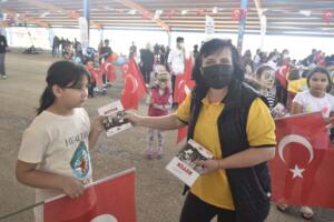 Adana Büyükşehir Belediyesi Bando Takımı’nın gösterisi ve mobil tırdan yapılan müzik eşliğinde dans eden çocuklar, doyasıya eğleniyor. Etkinlikte çocuklara Nutuk Kitabı ve çeşitli hediyeler verildi. Eğlenirken öğrenen çocuklara, Bilim ve Teknoloji Otobüsü’nde temel robotik kodlama başlangıç eğitimi de veriliyor.
