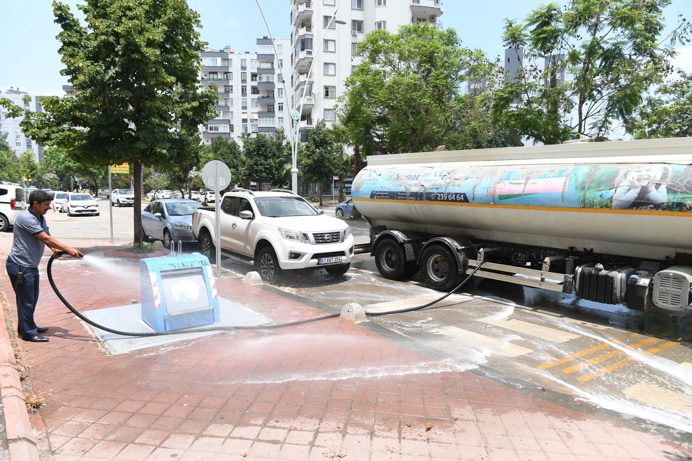 Çöp konteynerleri yanında Çukurova Belediyesi’nin sorumluluk alanındaki sokak ve caddeler ile parklarda da aynı uygulama yapılıyor. Sokak, cadde ve parklar da hazırlanan program dahilinde ilaçlı su ile yakınıyor ve Çukurova halkına daha sağlıklı bir ortam sağlanıyor.