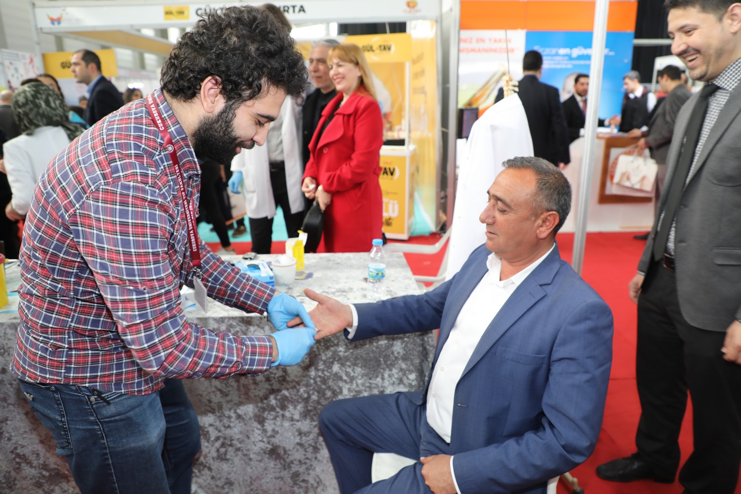 Tıp Ve Sağlık Bilimleri Fakülteleri ile Sağlık Hizmetleri Meslek Yüksekokullu öğrencileri fuar katılımcılarının tansiyon, şeker ve benzeri ölçümlerini de yaparak fuarda en çok ziyaret edilen stantlar arasında yer aldı.