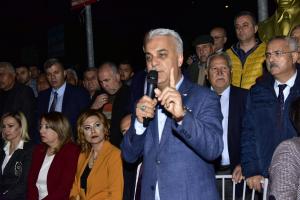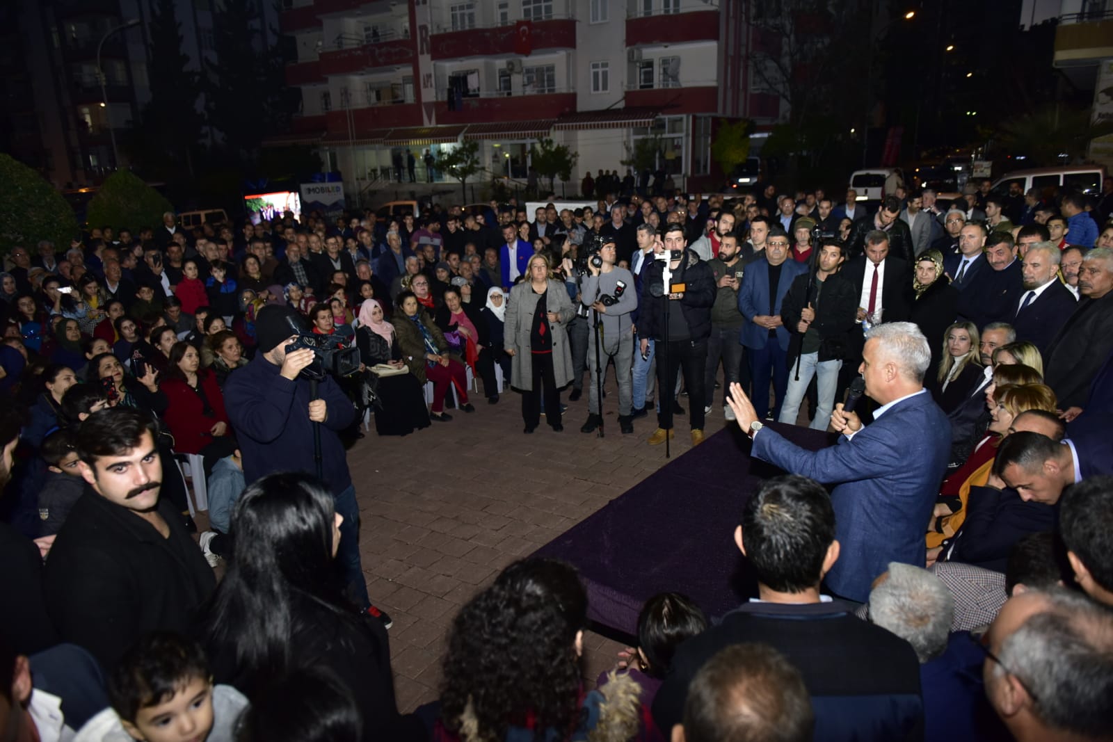 Huzurevleri Mahallesi Muhtarlığı önünde yapılan açık hava toplantısında Adana Büyükşehir Belediye Başkanı ve Cumhur İttifakı Milliyetçi Hareket Partili (MHP) Adana Büyük