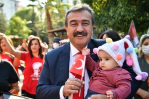 Cumhuriyet Bayramının 98’inci yıldönümü Mahfesığmaz Mahalle Muhtarlığındaki çok amaçlı salon önünde düzenlenen etkinlikle kutlandı. Ellerinde Türk Bayrakları ve Atatürk posterleriyle coşkuya ortak olan vatandaşlara hitap eden Çukurova Belediye Başkanı Soner Çetin, “En büyük bayramımız kutlu olsun” dedi.