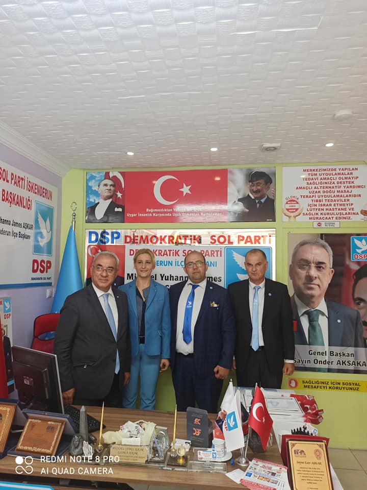 Demokratik Sol Parti Genel Başkanı Önder Aksakal, partisinin Hatay İl Kongresi dolayısıyla İskenderun’daydı. Aksakal, kentte sırasıyla, İskenderun Ticaret Odası, Esnaf Odası, Gazeteciler Cemiyeti ve Hatay Gazeteciler Cemiyeti İskenderun Temsilciliği’ni ziyaret etti. Ayrıca, kent gezisi sırasında esnafı da ziyaret eden Aksakal, esnafın ve toplumun her kesimden halkın sorunlarını dinledi.
