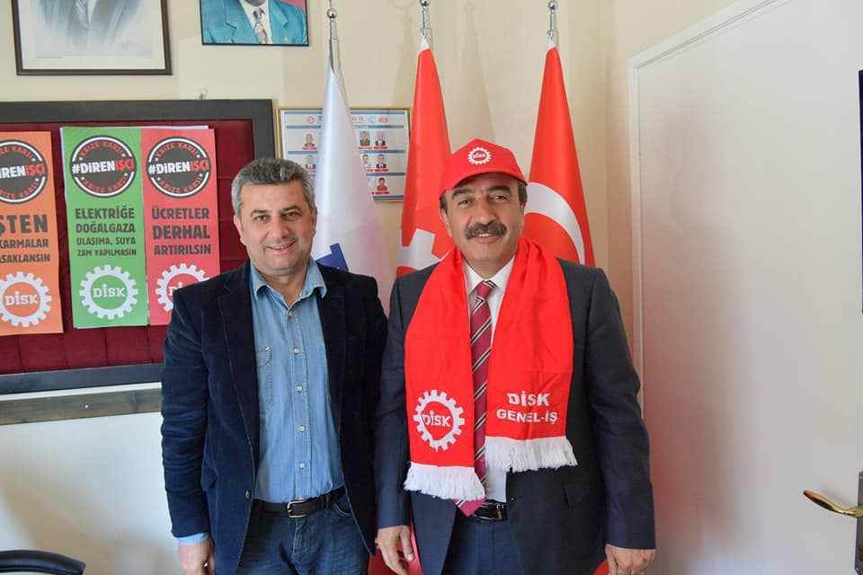 Çukurova Belediye Başkanı Soner Çetin, DİSK Bölge Başkanlığını ziyaret ederek, işçilerle buluştu ve sohbet etti. Eski Çalışma Bakanı Nihat Matkap’ın da katıldığı ziyarette konuşan DİSK Bölge Başkanı Yaşar Gündoğdu, “Bu seçimlerde DİSK’in tavrı net. Emekten yana olan adayları destekliyoruz. Güvenlik çalışanlarının Adana’da ilk örgütlendiği kurum Çukurova Belediyesi. Ayrıca taşeron işçiler de Adana’da ilk olarak Çukurova Belediyesi’nde örgütlendi. Taşeron kaldırılmasının ardından yine Çukurova Belediyesi’nde örgütlendik. En iyi toplu iş sözleşmesini burada imzaladık. Başkan Soner Çetin emek dostudur. Kendisini destekliyoruz” dedi.