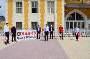 Hak – İş Konfederasyonu Adana İl Başkanlığı 1 Mayıs dolayısıyla İstasyon Meydanında bir basın açıklaması yaptı.