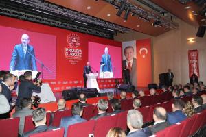 İçişleri Bakanımız Sayın Süleyman Soylu, Doğu ve Güneydoğu’da terörle mücadele noktasında yapılanlara değinerek “Vatandaşlardan çok güzel şeyler duyuyorum; ‘Doğu Ekspresi’nde yer bulamıyoruz’ diyorlar. Otellerde boş yer yok. Doğu ve Güneydoğu Anadolu bugün kabuğunu kırmıştır. ‘Makus talihi’ diye ifade edilen kısır döngüyü de kırmıştır. Türkiye’nin kalkınmasında artık Doğu ve Güneydoğu Anadolu da topa girmiştir. Yüksekova’ya gelen yolcu sayısı 190 bin oldu. Diyarbakır’da turist sayısı 2018’de 421 bin 380’e yükseldi. Şehrin nasıl geliştiğini ve terörle mücadeleye nasıl yansıdığının işaretidir” dedi.