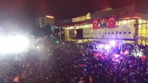 Adana Büyükşehir Belediye Başkanlığını kazanan Millet İttifakı’nın CHP’li adayı Zeydan Karalar, Seyhan‘da seçimi önde tamamlayan CHP’li aday Akif Kemal Akay ve yeniden Çukurova Belediye Başkanı seçilen mevcut Başkan CHP’li Soner Çetin, Seyhan Belediyesi Yaşar Kemal Kültür Merkezi önünde partililerle bir araya geldi. Çok sayıda CHP’li ve Millet İttifakı destekçisi, Yaşar Kemal Kültür Merkezi önünde toplanarak kutlama yaptı. Türk bayrakları taşıyan kalabalık grup, dans edip, Zeydan Karalar lehine sloganlar attı. Gruptaki bazı partililer meşale yaktı.
