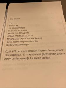 Gürer, Yargıtay’ın daha önce aldığı karara göre PTT’de taşeron firma çalışanlarına, 7201 sayılı Kanuna göre tebligat yapma görevi verilemeyeceği açıkça belirtilmesine rağmen, ortan HGS cezalarının tebligatında taşeron firma çalışanlarının görevlendirilmesinin yasaya aykırı olduğuna dikkat çekti. Gürer, “Yargıtay kararına rağmen neden taşeron firma çalışanlarına tebligat yaptırıyorsunuz? HGS’de çok ceza kesildi, bunlar icraya düştü. İcraya düşünce para lazım; işte bu fırsatçılıktır” diye konuştu.