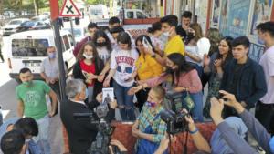 Başkan Zeydan Karalar, açılışı takip eden gençlere Gençler İçin Atatürk kitabını hediye etti.