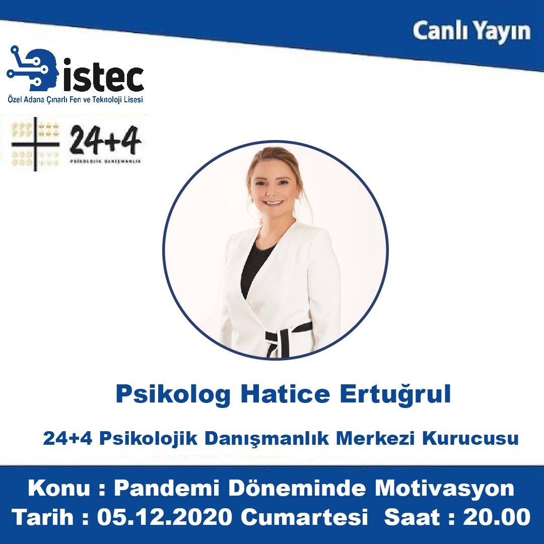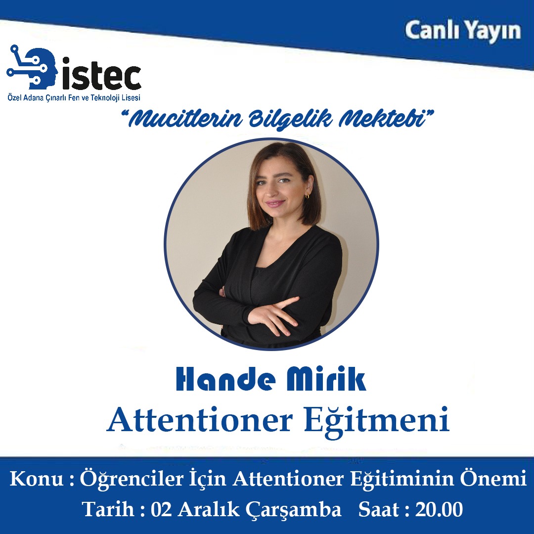 İSTEC’in bu hafta canlı yayın konuğu Özel Eğitim Uzmanı Mehmet Altınok’u ağırlayacak. Verimli ders çalışma teknikleri ve sınavlarda başarılı olabilmek için sınav stratejilerinin konuşulacağı yayın 13 Aralık Pazar günü 20.00`da Istec Çınarlı Fen ve Teknoloji Lisesinin instagram hesabından canlı yayınlanacak.