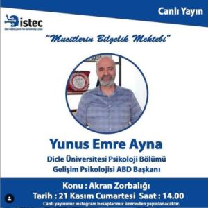 Her hafta farklı konu ve konuklarla canlı yayınlar yapan İSTEC, geçtiğimiz hafta da Avni Yiğit Göksu moderatörlüğünde Dicle Üniversitesi Psikoloji Bölümü Gelişim Psikolojisi ABD Başkanı Yunus Emre Ayna,24+4 Psikolojik Danışmanlık Merkezi Kurucusu Psikolog Hatice Ertuğrul,Pavones Psikoloji ve Danışmanlık Merkezi Kurucusu Klinik Psikolog Hülya Üstekidağ Ayna ve AttentionerEğitimeni Hande Mirik gibi başarılı isimleri canlı yayında ağırladı.