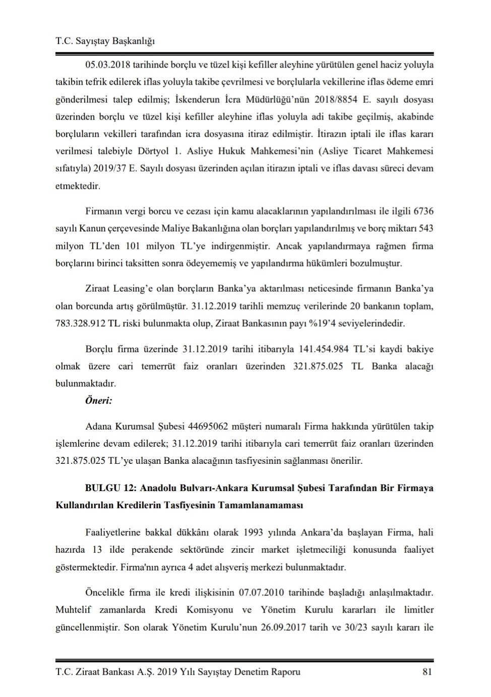 CHP Adana Milletvekili ve Tbmm Kit Komisyonu Üyesi Orhan Sümer, Kamu Bankası olan Ziraat Bankası’nın 2019 yılı Sayıştay Raporlarına yansıyan batık, riskli kredilerini ve tek bir firmaya verilen 321 Milyon Liralık Batık ve Riskli Krediyi kamuoyu gündemine taşıdı.