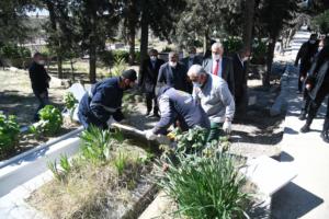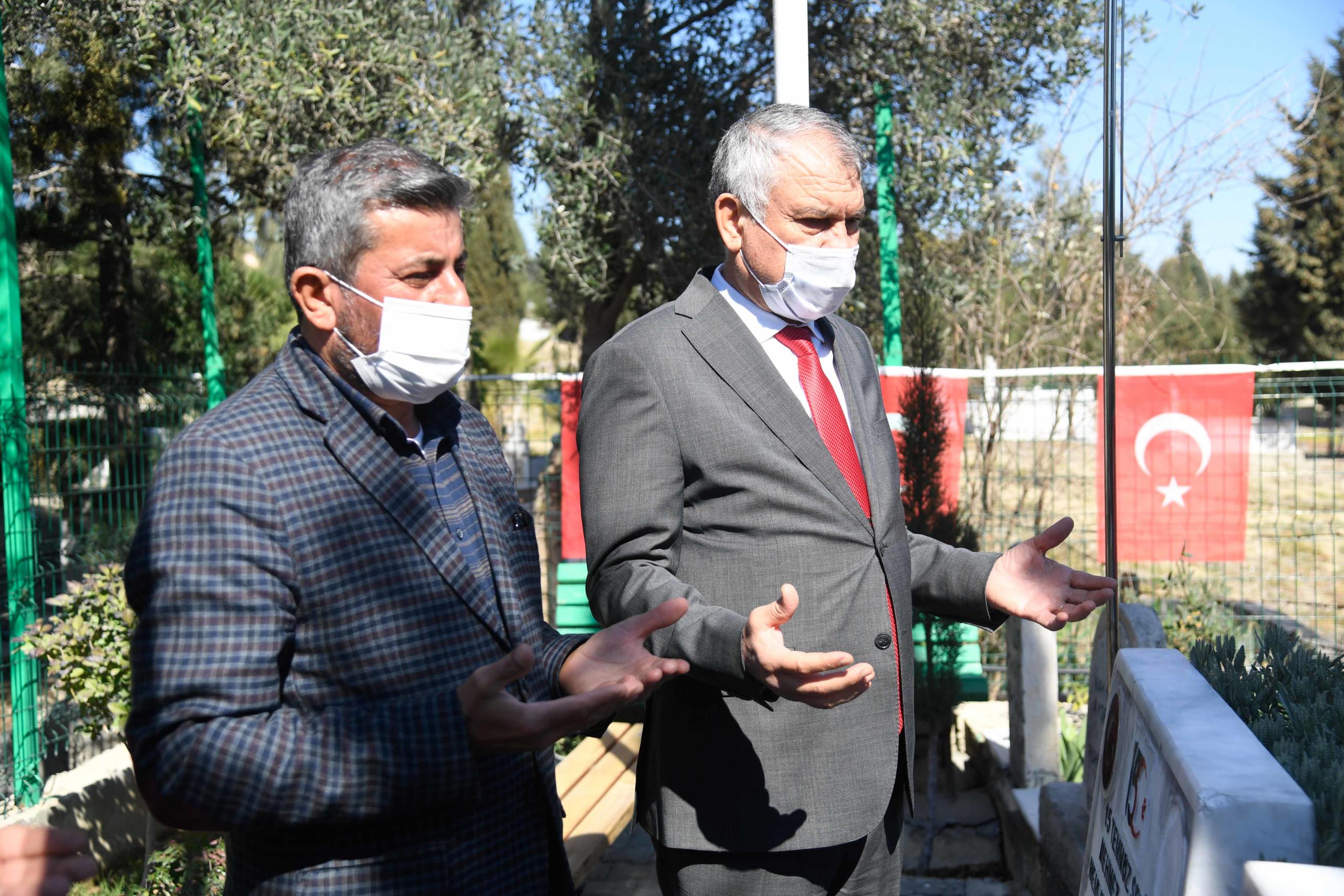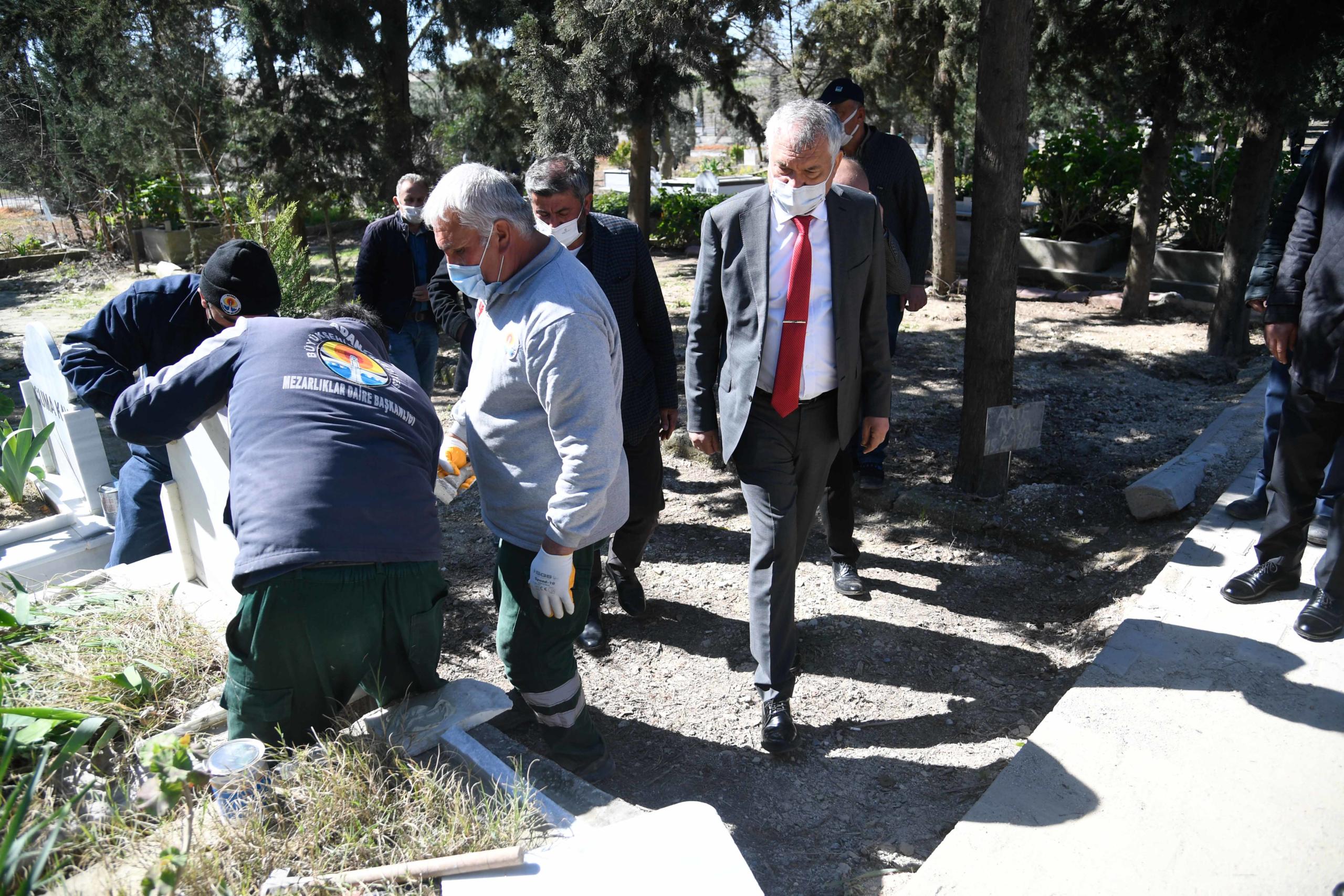 Başkan Zeydan Karalar, şehitlikteki diğer mezarların onarımını da yakından takip etti.