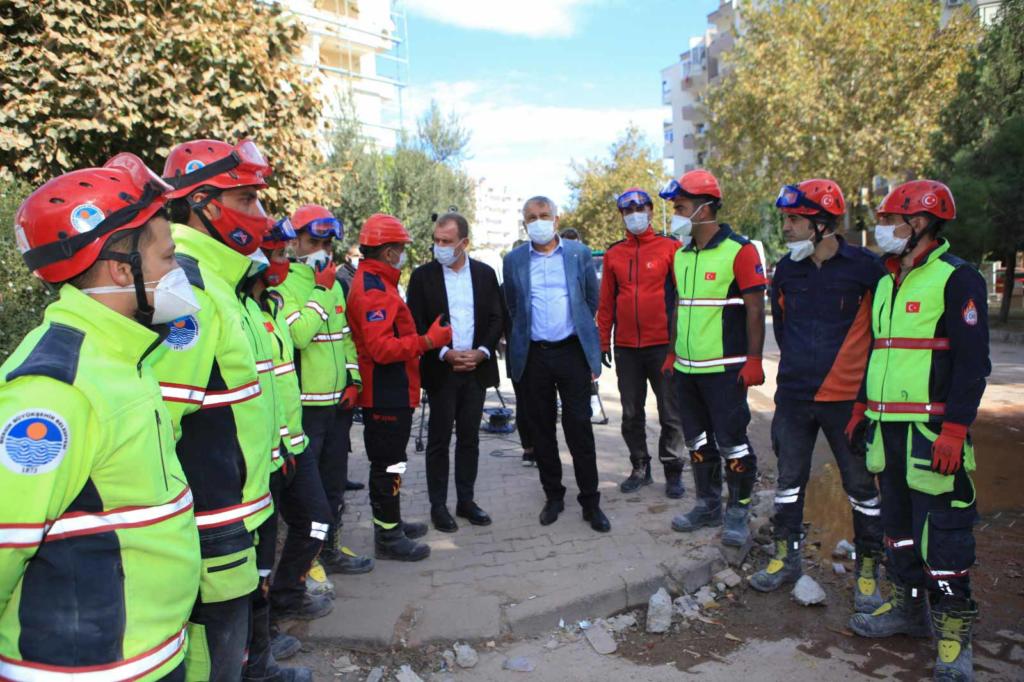 Adana halkı adına İzmirlilere destek için geldiklerini belirten Başkan Zeydan Karalar, “İzmir’de siyasi parti ayrımı yapılmaksızın, yaraları sarmak için çaba gösteriliyor. Uzman ekiplerin tek amacı enkaz altından bir canı daha sağ çıkarmak. Burada herkes dayanışma için var ve omuz omuzayız” dedi.