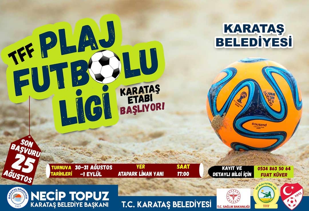 Her yıl Türkiye Futbol Federasyonu tarafından düzenlenen Plaj Futbol Ligi Karataş etabı, 30 Ağustos tarihinde Karataş Belediyesinin katkıları ile gerçekleşecek.