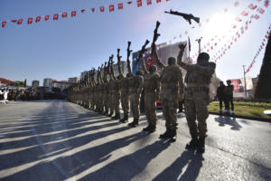 Sivil ve askeri erkan daha sonra kortej eşliğinde Uğur Mumcu Meydanı’nda düzenlenen kutlamalara katıldı.