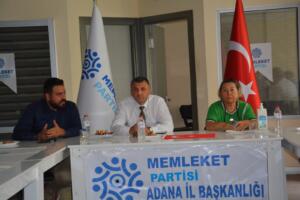 Partiye il başkanı olarak Kayyum atanan Cüneyt Demirtaş, Siyasi Etik Kurulu Üyesi Ethem Eke, Memleket Partisi Çukurova il Başkanı Murat Aravi ve yönetimi, Memleket Partisi Yüreğir İlçe Başkanı Sait Doğan ve yönetimi il binasında Kurban bayramı dolayısıyla bir bayramlaşma merasimi düzenledi.