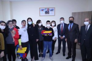 Özel Eğitim sınıfında eğitim gören çocuklarla sohbet edip onlara hediyeler veren Rektör Prof. Dr. Meryem Tuncel’e öğrenciler yakın ilgi gösterdi.