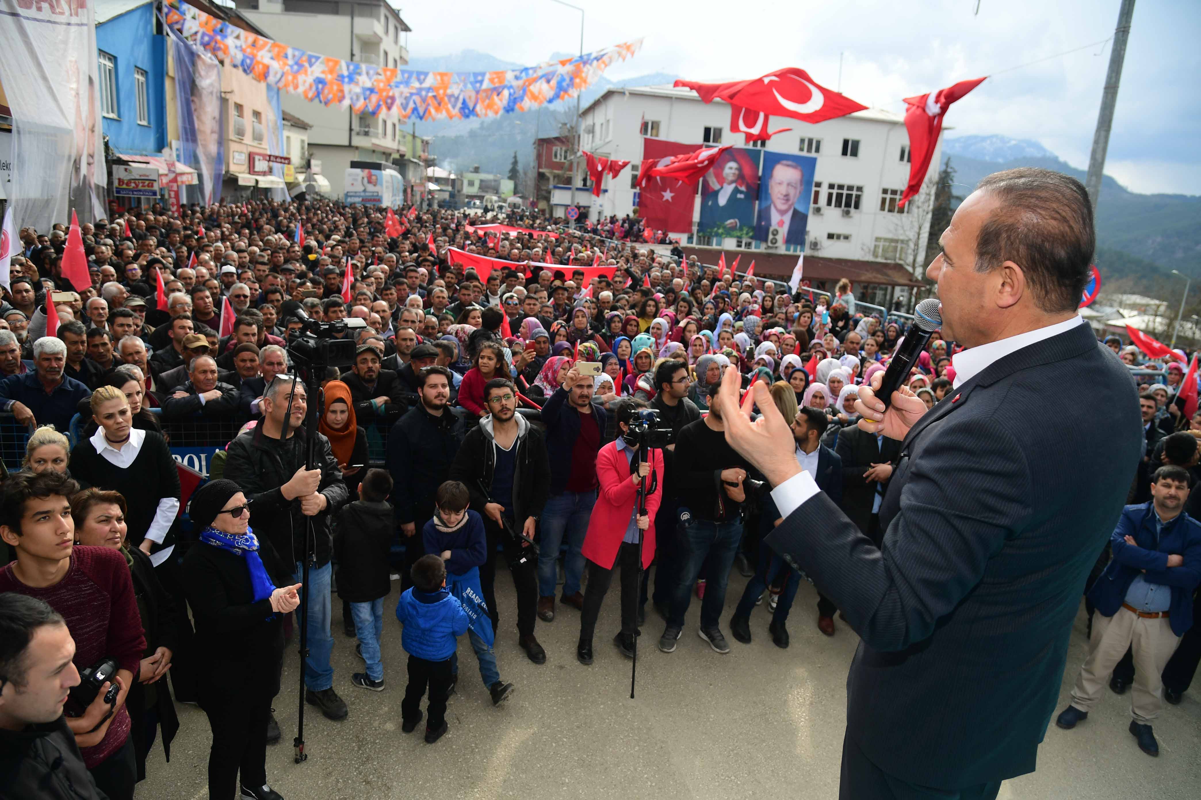 Cumhur İttifakı Aladağ Seçim İrtibat Bürosu’nun açılışını Aladağlılar mitinge dönüştürdü.