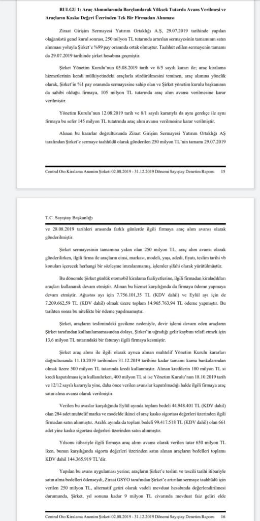 Orhan Sümer, “ Ziraat Girişim Sermayesi Yatırım Ortaklığı 2019 senesinde %99 unu satın alarak Central Oto Kiralamayı alıyor. Şirket araç kiralama işi yapacak kar elde edecek, kamu kazanç sağlayacak sanıyorsunuz. Ancak öyle olmuyor. Şirket sermayesinin tamamı olan 250 Milyon TL’yi araç alım avansı olarak, şirketin Yönetim Kurulu Başkanının sahibi olduğu firmaya gönderiyor. Bu firmaya 250 milyon lira gönderilirken kiralanacak araçların, cinsi, markası, modeli, yaşı, adedi, teslim tarihi konularını içeren herhangi bir sözleşme imzalanmıyor. Tüm işlemler şifahi olarak yapılıyor. Yani halk arasındaki tabirle al gülüm ver gülüm yöntemi ile birileri zengin ediliyor” dedi.