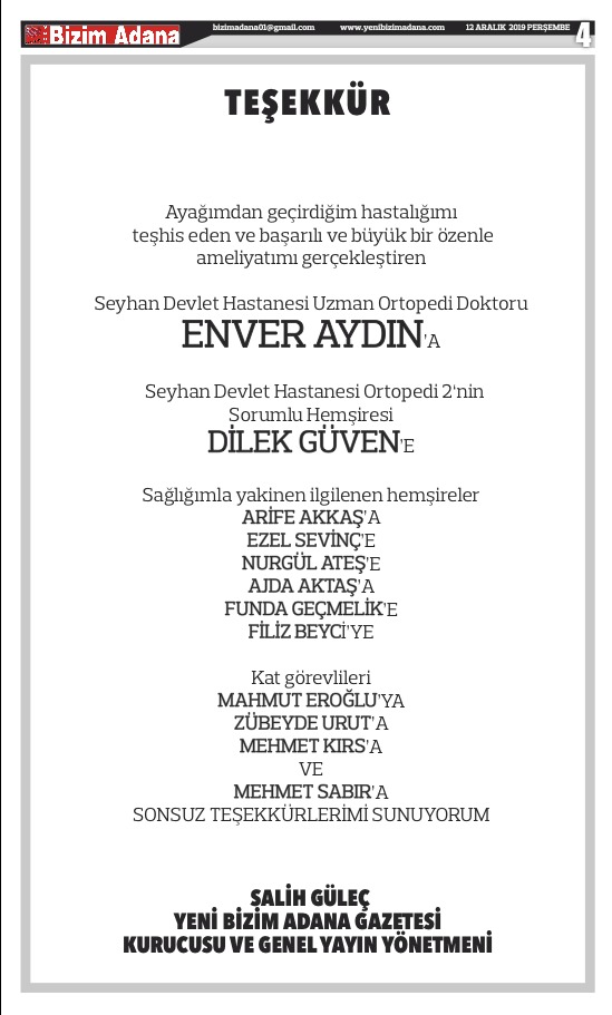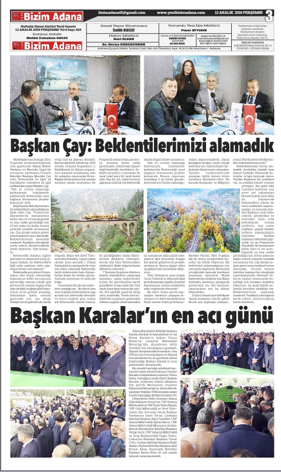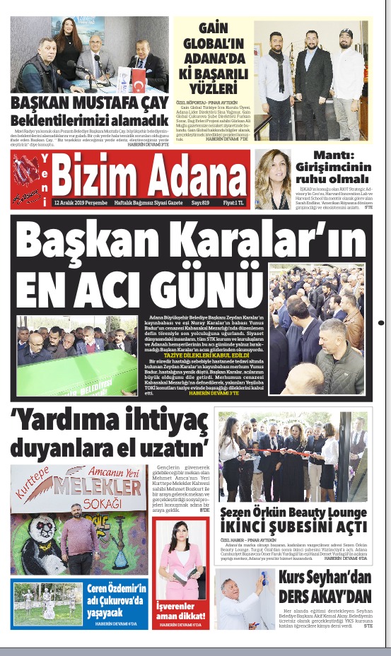 YENİ BİZİM ADANA 12 ARALIK 2019 YAYINI www.yenibizimadana.com