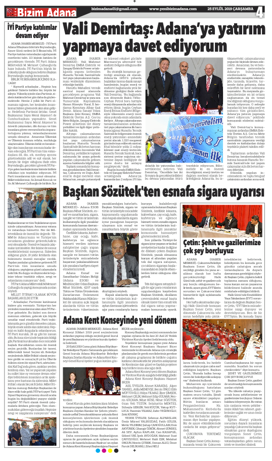 YENİ BİZİM ADANA 25 EYLÜL 2019 YAYINI | Yeni Bizim Adana Gazetesi Web SitesiYeni Bizim Adana Gazetesi Web Sitesi