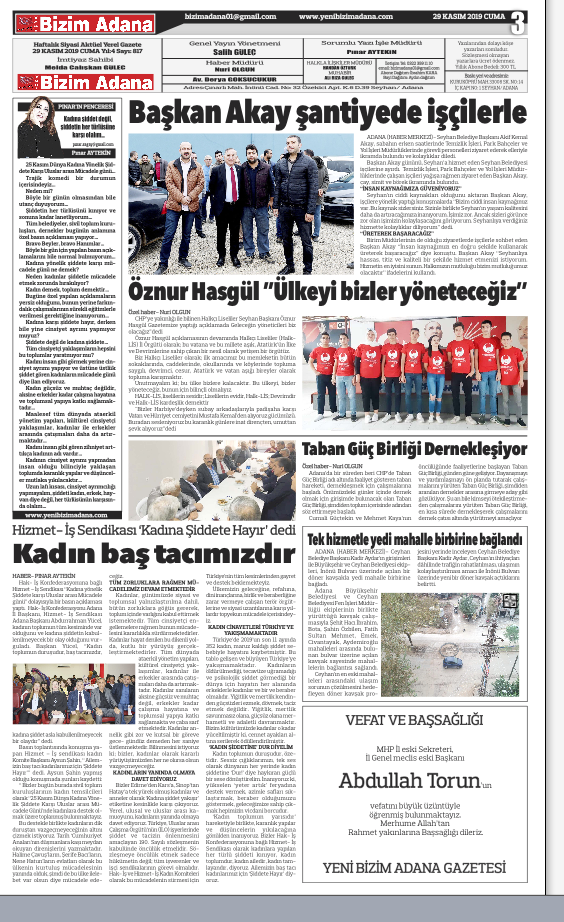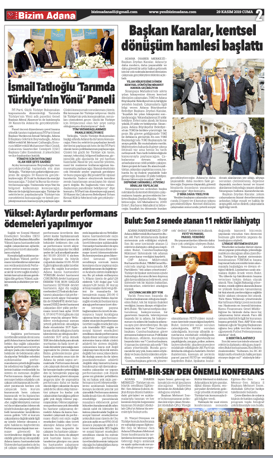 YENİ BİZİM ADANA 29 KASIM 2019 YAYINI | Yeni Bizim Adana Gazetesi Web SitesiYeni Bizim Adana Gazetesi Web Sitesi