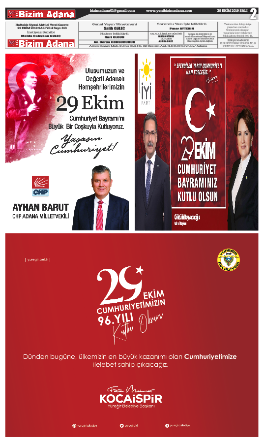 YENİ BİZİM ADANA 30 EKİM 2019 YAYINI www.yenibizimadana.com | Yeni Bizim Adana Gazetesi Web SitesiYeni Bizim Adana Gazetesi Web Sitesi