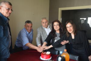 Yeni Bizim Adana Gazetesi imtiyaz sahibi Salih Güleç ve Genel Yayın Yönetmeni Pınar Aytekin’i yalnız bırakmayan Memleket Partisi Yüreğir İlçe Başkanı Sait Doğan, Memleket Partisi Yüreğir İlçe Sekreteri Sıdıka Uçuk, Söz Gazetesi imtiyaz sahibi Reha Ören, gazeteci Murat Yıldız, Ebru Sagay hep birlikte pasta kestiler. Adana Büyükşehir Belediyesi basın danışmanı Utku Sağılır da Yeni Bizim Adana’nın doğum günü kutlamak için geldi.